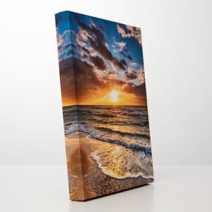 We offer high-gloss, and matte finishes. (Please note that the matte finish is only available in limited smaller sizes. 30×40, 40x50cm) High-gloss enhances colours and depth, while matte reduces glare and works well in bright rooms. High Gloss is our most popular option.